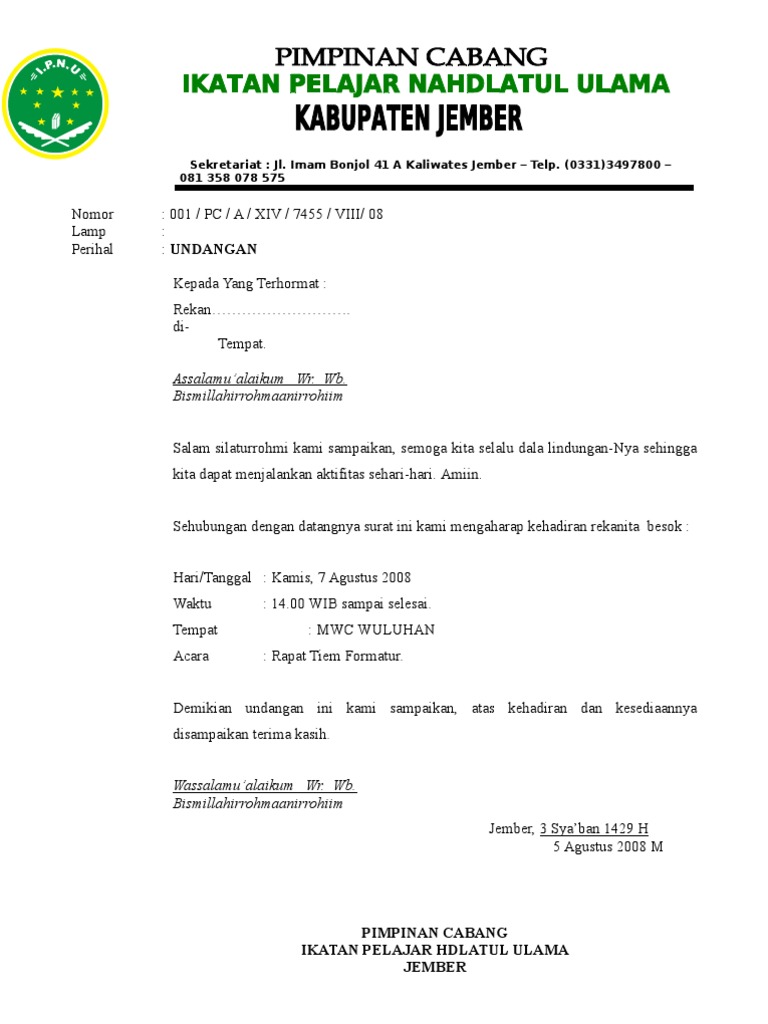Contoh Surat Undangan Ipnu Ippnu Pdf - Sample Surat Undangan from 1.bp.blogspot.com Cek cara membuatnya yang benar surat tugas memiliki beberapa tujuan tergantung dari instansi pemberi tugas. Contoh surat tugas yang benar. Surat tugas ini bisa diartikan sebagai surat yang dikeluarkan oleh instansi tertentu atau pihak yang lebih tinggi dan ditujukan kepada bawahannya untuk melaksanakan. Ipnu desa babadan dengan nomor : Fungsi dan ketentuan surat tugas. Beberapa contoh surat tugas yang bisa anda jadikan refrensi untuk membuat surat bagi karyawan anda maupun surat yang dibutuhkan oleh perusahaan. Contoh surat rekomendasi pengesahan ipnu. Pengertian surat tugas seperti kita tahu.